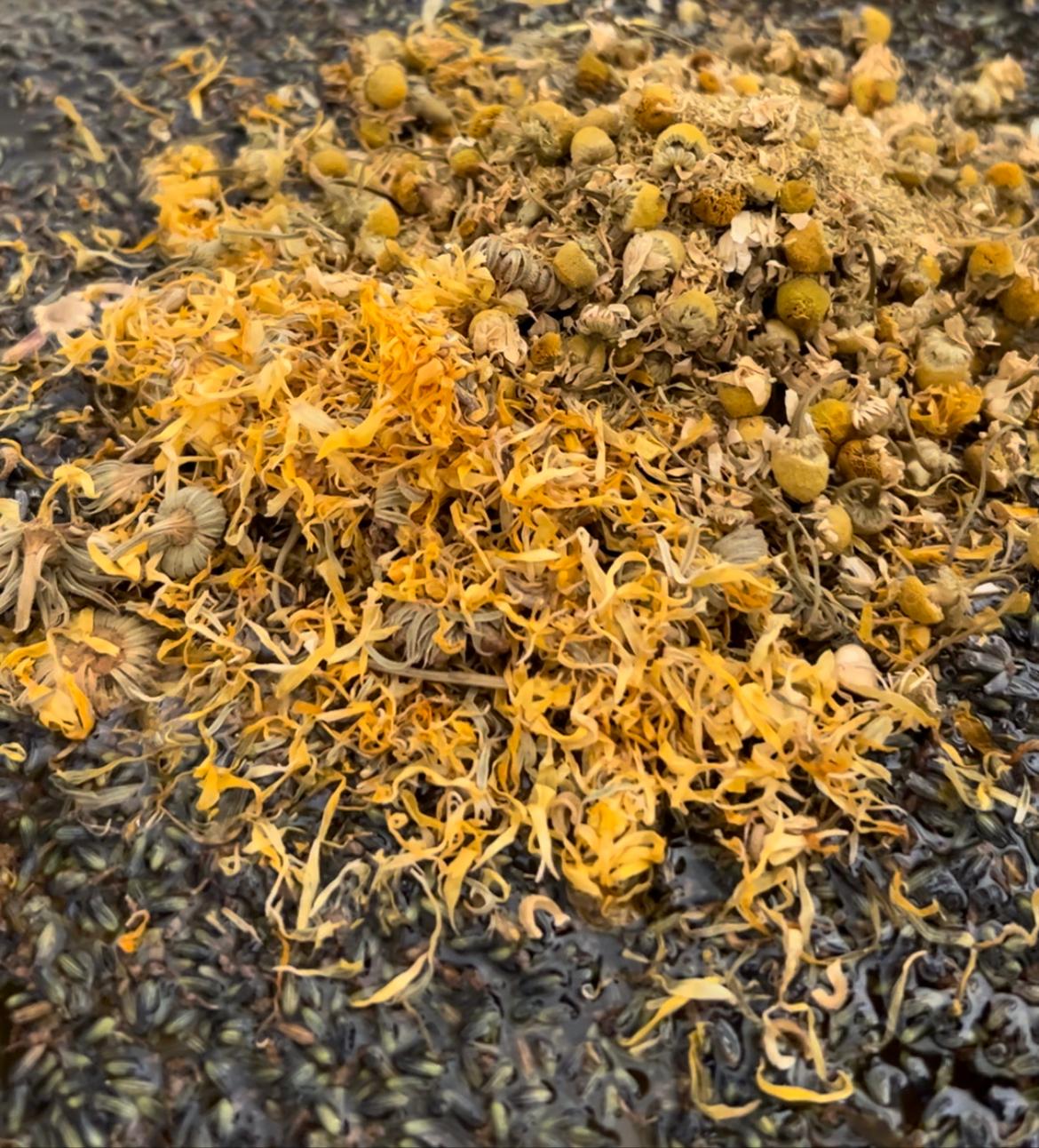 Once tallow is rendered in its most nutrient dense state. We carefully curate a selection of herbs, botanicals, carrier oils, and butters, blending them to complement and enhance the nourishing properties of tallow. We do not use any essential oils. All of our products are infused with certified organic or raw herbs and botanicals, cold pressed unrefined carrier oils and butters, ensuring that they remain in their purest, most natural form.