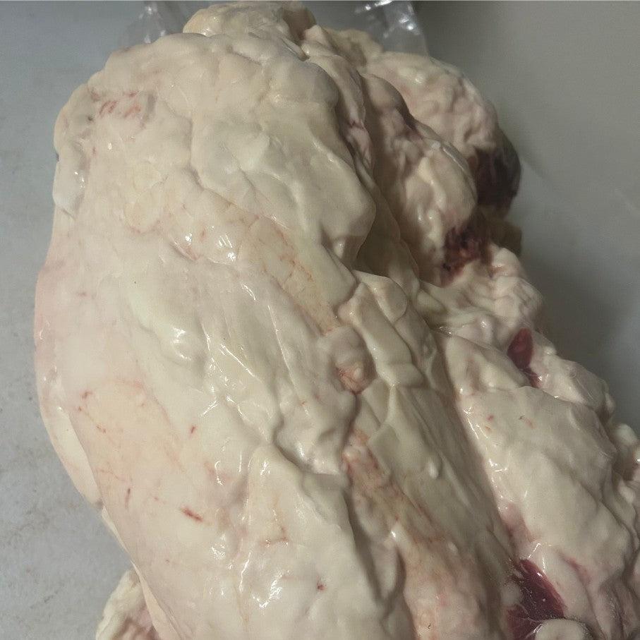 We purchase the suet from a local 4th generation regenerative cattle farm. The cattle are 100% grass-fed and finished rotationally grazing on organic pastures 365 days a year. No antibiotics, no hormones, no soy, no grain, Non-GMO. They never see a feed lot.